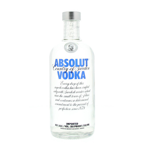 Absolut is een Zweedse wodka gemaakt van tarwe en zuiver water afkomstig uit Åhus. Absolut Vodka wordt op prijs gesteld voor zijn rijke, krachtige en complexe smaak die tegelijk zacht is en gekenmerkt wordt door een krachtig graanaroma.