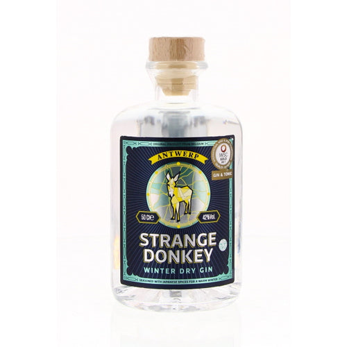 Strange Donkey Winter Dry gin is de wintervariant van Strange Donkey met extra citrusvruchten zoals Yuzu. Bovenop het klassieke recept kiest men ook voor Japanse kruiden zoals shiso en kerselaar bloesem. Het resultaat is een prachtige upgrade met een originele twist; Fijne florale toetsen met een leuke neus en citrus in de afdronk. Strange Donkey is een echte Antwerpse gin uit Vremde en wordt gedistilleerd in stokerij Pirlot. Het verhaal achter Strange Donkey gaat dat vier mannen in december 2014 besloten een nieuw maceraat te bereiden voor een nieuwe gin. De vrouw van het huis proefde mee en besloot verder te experimenteren aangezien haar keuken toch dagelijks vol lag met de meest vreemde botanicals, extreme kruiden en citrusvruchten. De wintervariant viel in 2017 ferm in de prijzen. Men won op het IWSC een gouden medaille in London. Het toonaangevende Internationale Wine & Spirits Competition geniet terecht een hoog aanzien en keurt jaarlijks duizenden gins.